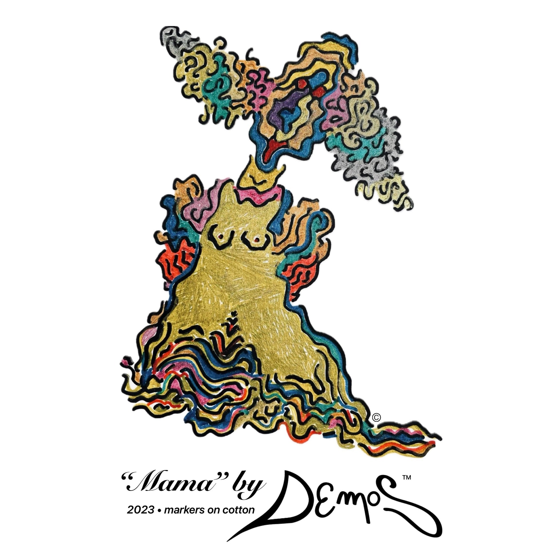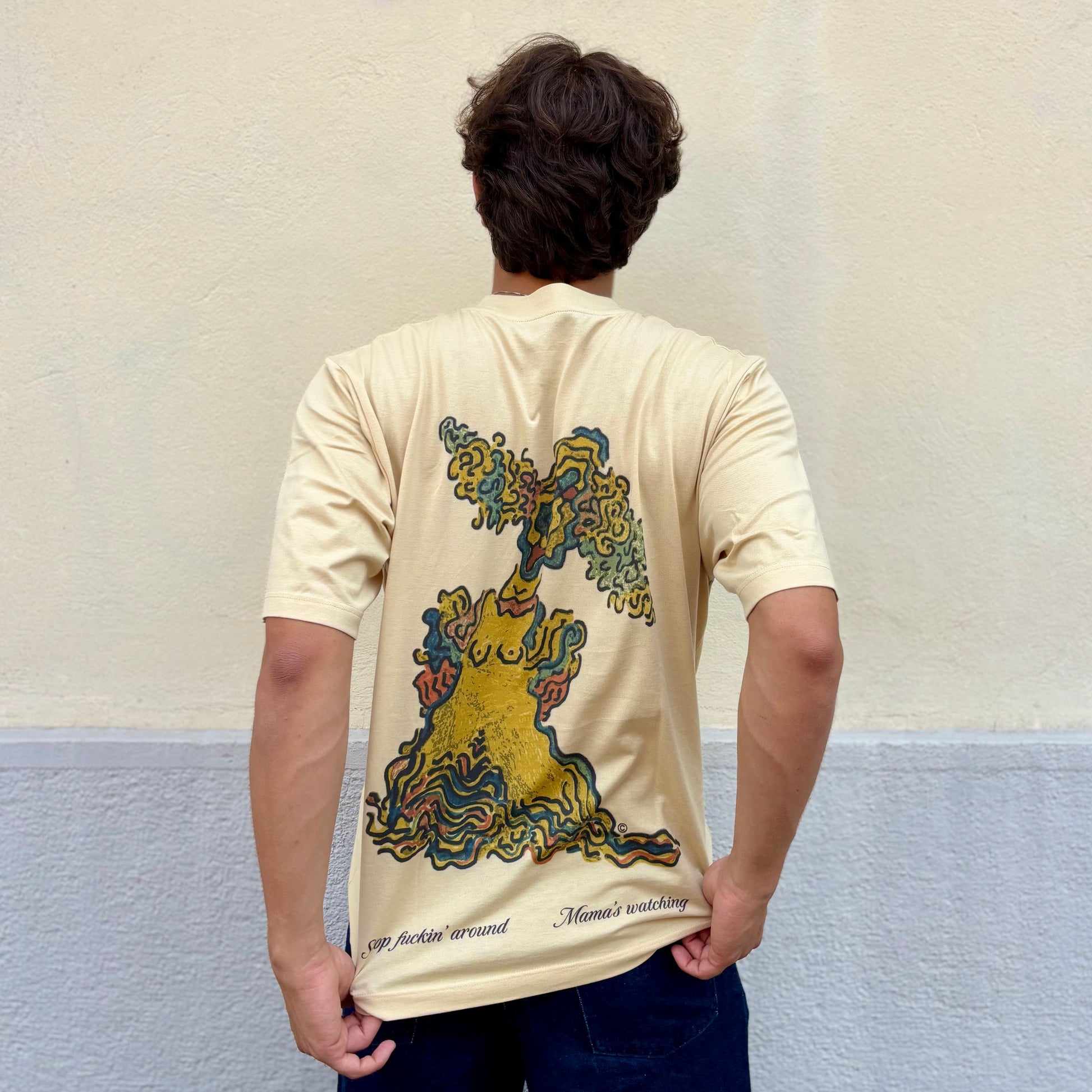 “This Tee was born from a funny caricature in a 2023 sketch by my father, the drawing shows the figure of an old woman.”