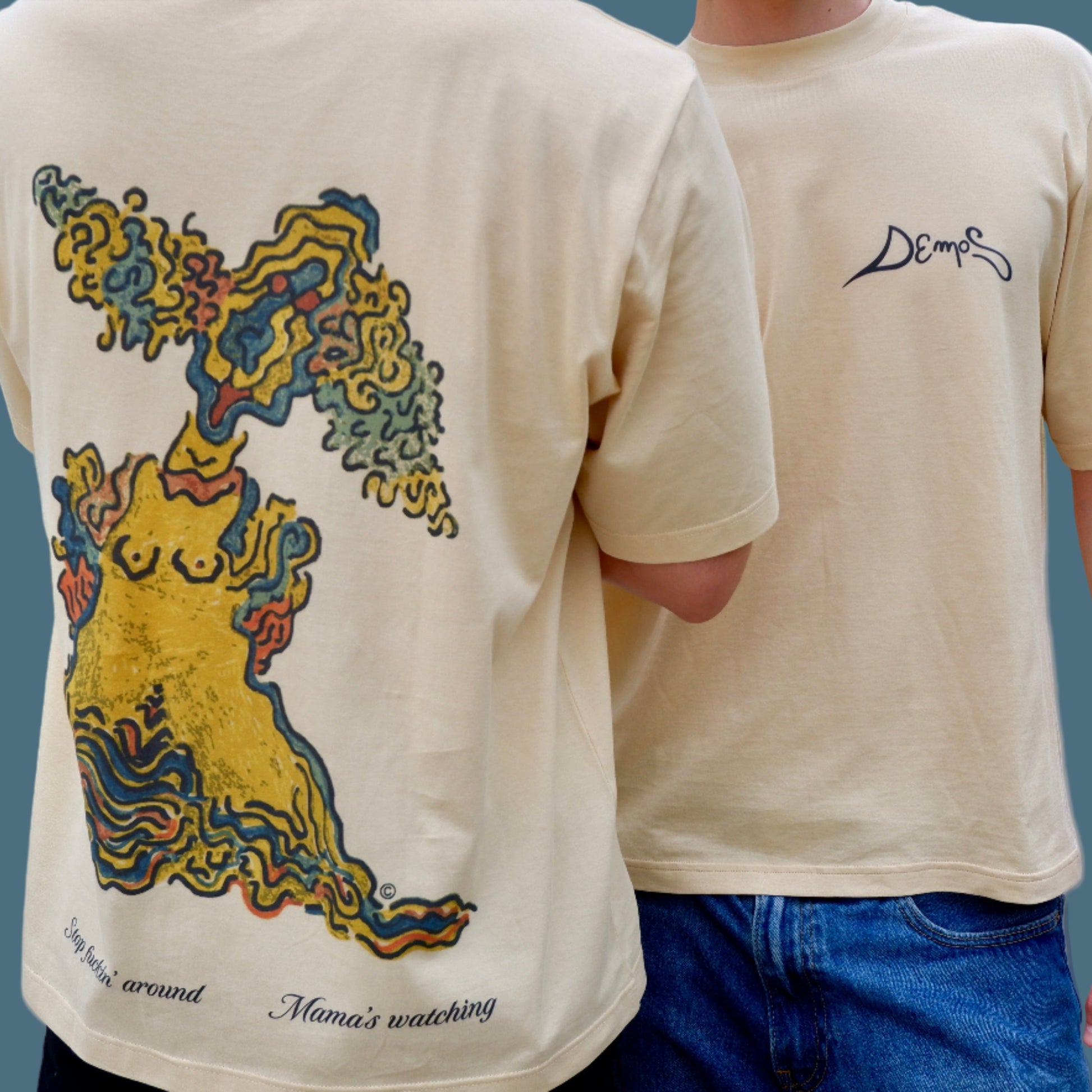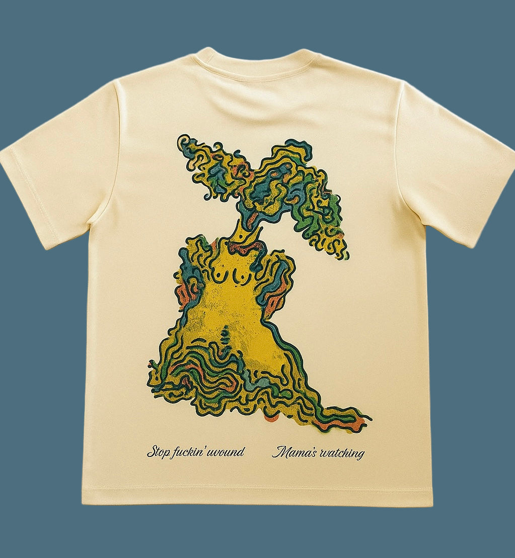 The figure represents that boss, that rule, that person who dictates how things must be done. We’re taking that power back. We've immortalized the caricature and paired it with a defiant, tongue-in-cheek warning: Mom is watching, stop messing around.